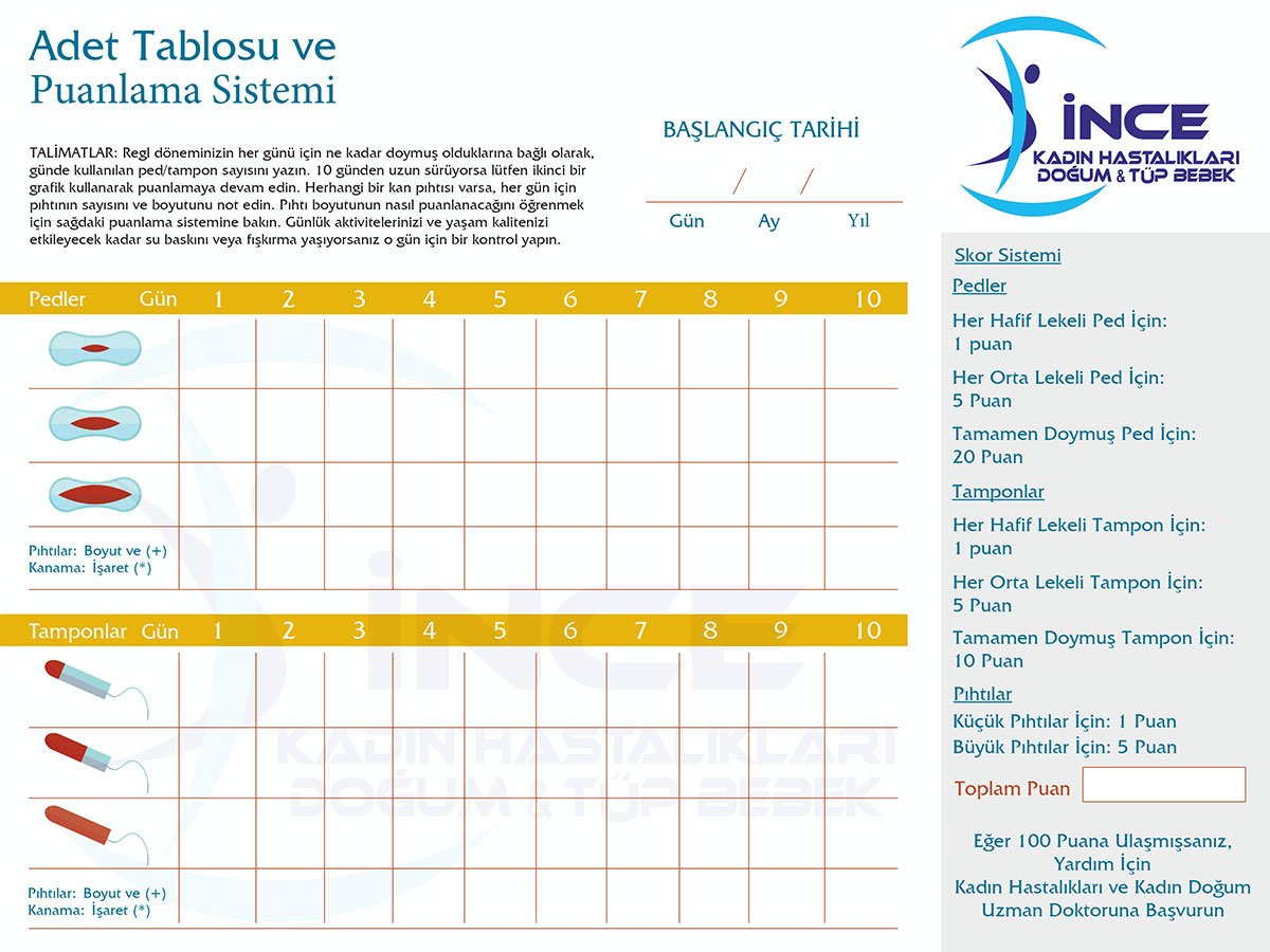 Aşağıdaki tabloyu indirip adet döneminizi takip için kullanabilirsiniz.